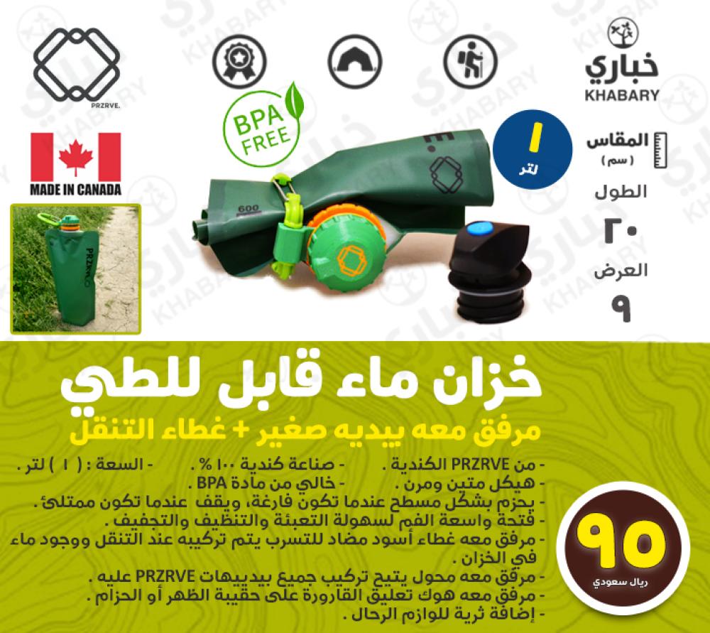 - مرفق معه هوك تعليق القارورة على حقيبة الظهر أو الحزام .