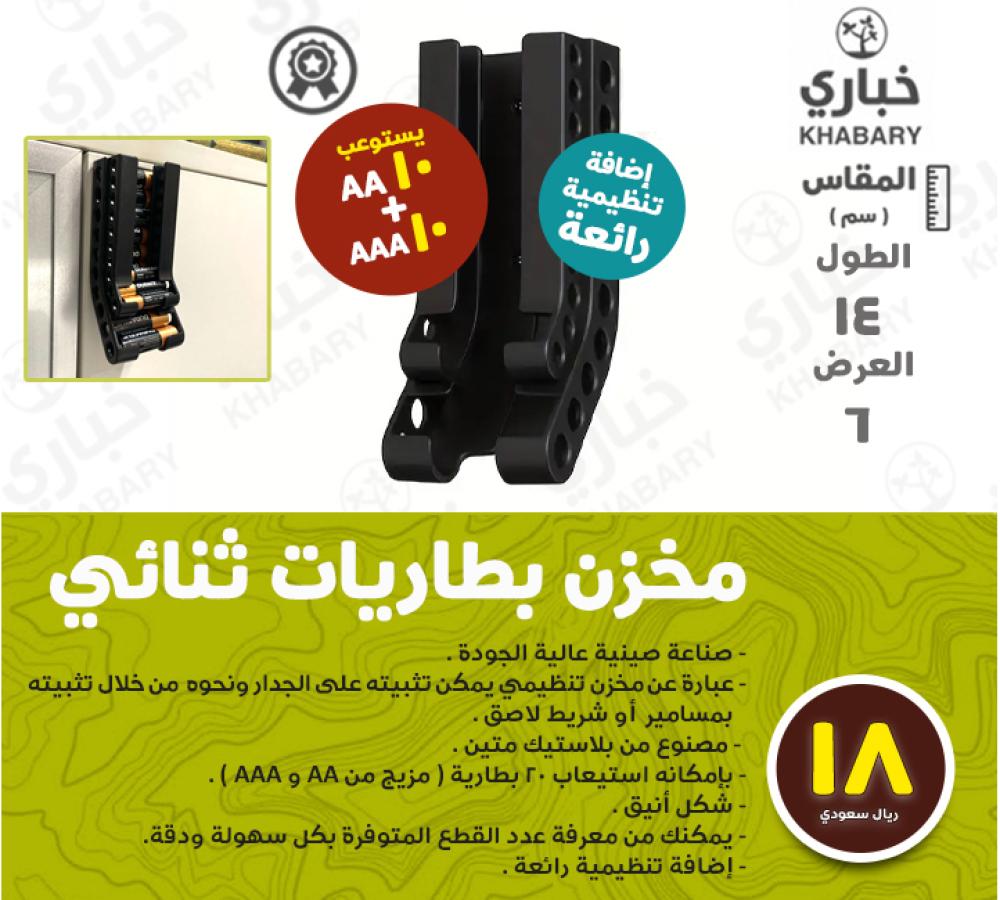 - بإمكانه استيعاب 20 بطارية ( مزيج من AA و AAA ) .