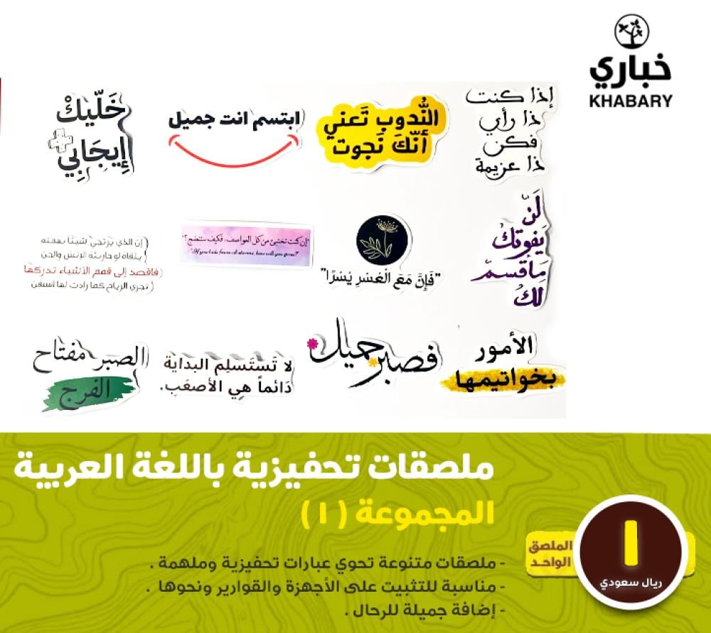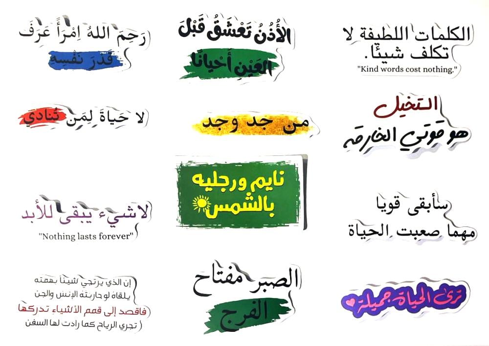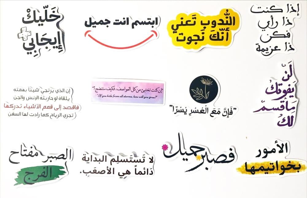 - ملصقات متنوعة تحوي عبارات تحفيزية وملهمة .