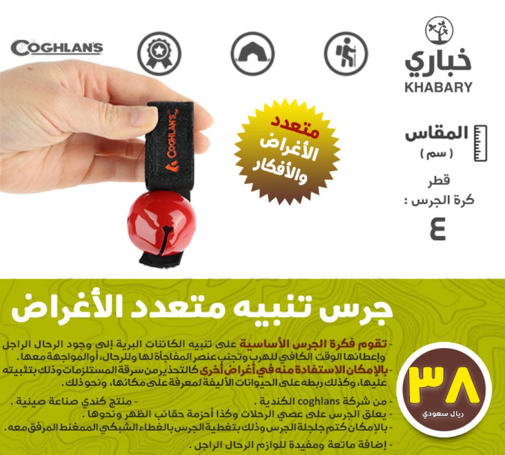 - يعلق الجرس على عصي الرحلات وكذا أحزمة حقائب الظهر ونحوها .