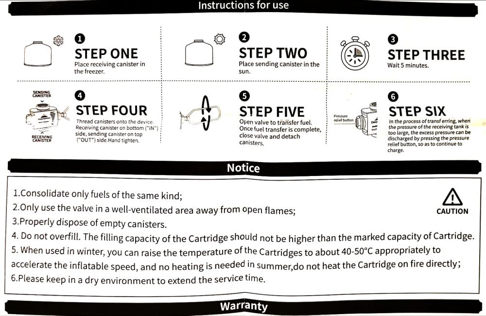 - يتيح هذا المحول نقل الغاز بين عبوات غاز البوتان الفارغة (ذات النوع اللولبي) وذلك من شأنه إدارة فعّالة للغاز، والقضاء على مشاكل تدني كفاءة تدفق الغاز من العبوة، وأيضاً التخلص من العبوات الزائدة .