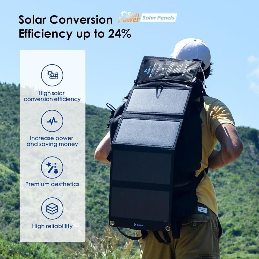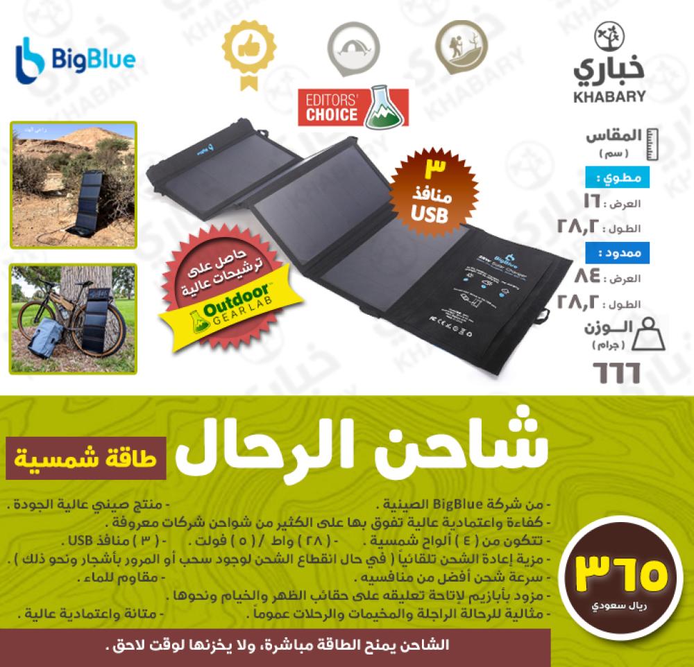 شركة BigBlue الصينية مغمورة من حيث الشهرة وقوة الدعاية ولكن شواحن الطاقة الشمسية لديها تحظى باحترام المواقع الغربية المهتمة باختبار ومراجعة لوازم الرحلات .