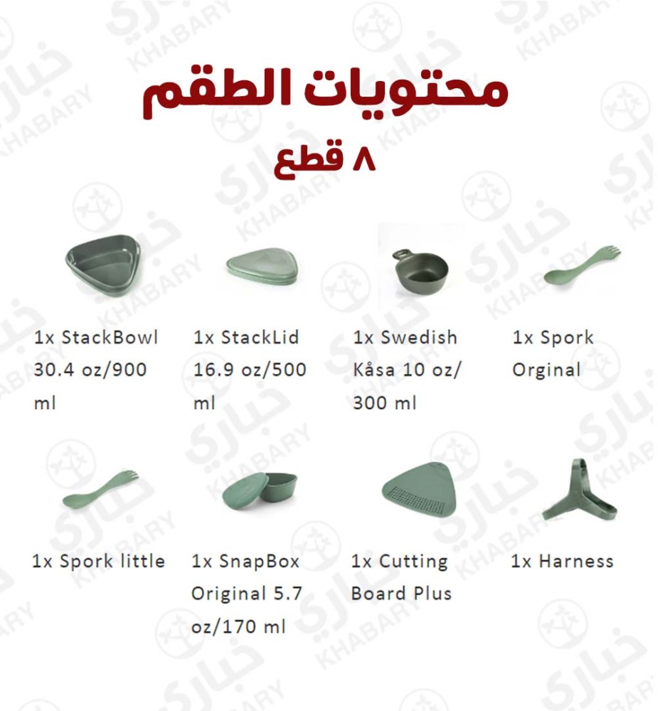 - طقم يضم كل ما تحتاجه لإعداد وتناول وجبتك في الهواء الطلق .