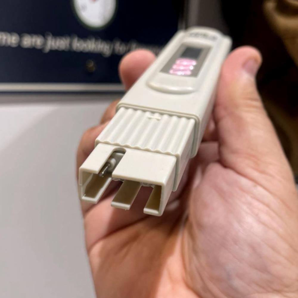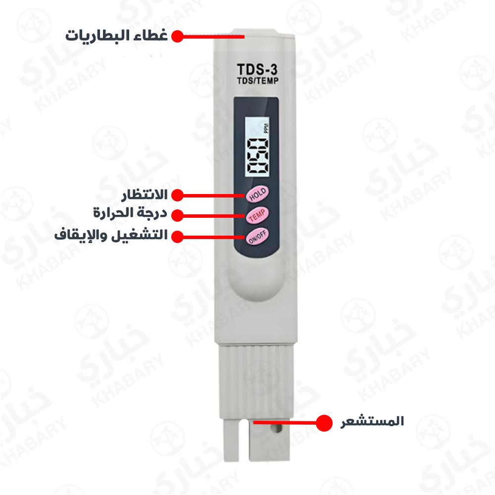 - يقيس نسبة الأملاح الصلبة الذائبة في الماء، مثل: الكالسيوم والمغنيسيوم والبوتاسيوم والصوديوم، وغيرها. ويعبر عنها بـــ (تي دي إس) (TDS) .