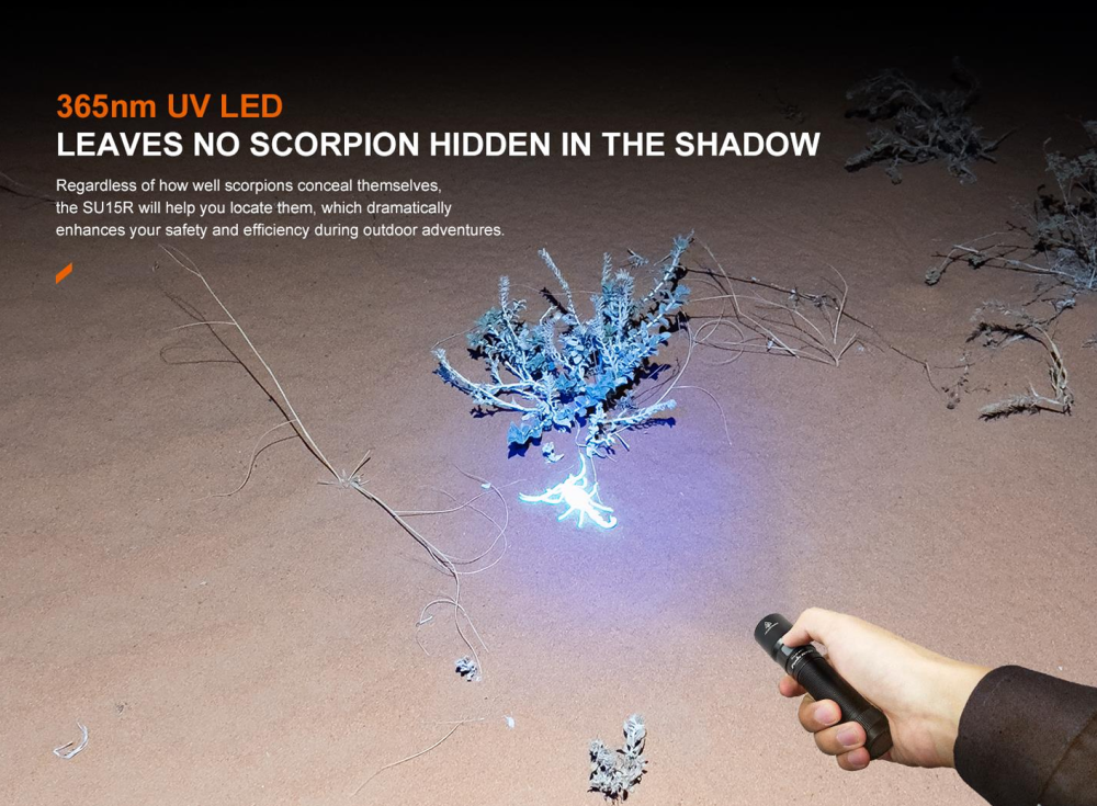 لذلك لا يبدو ساطعًا مثل ضوء ( 395 ) نانومتر، ولكنه في المقابل أكثر راحة للعين وأكثر مثالية ونقاء للكشف في البيئات المظلمة .