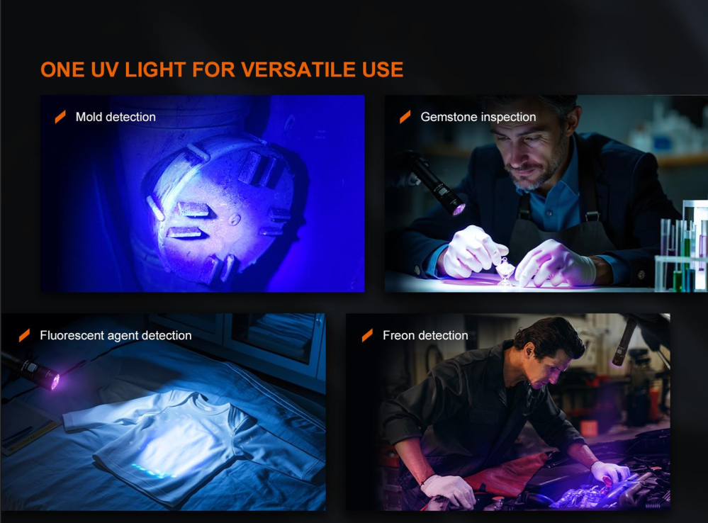 ( كشف العقارب-كشف المتحجرات والأحجار الكريمة-كشف العملات المزيفة-كشف الطوابع المزيفة - كشف السوائل-الكائنات الحية لذا فهو مفيد للتأكد من نظافة المنازل والفنادق..وغير ذلك الكثير ) .