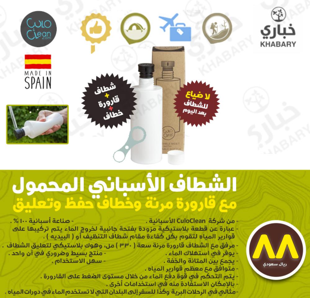 - مثالي في الرحلات البرية وكذا للسفر إلى البلدان التي لا تستخدم الماء في دورات المياه .