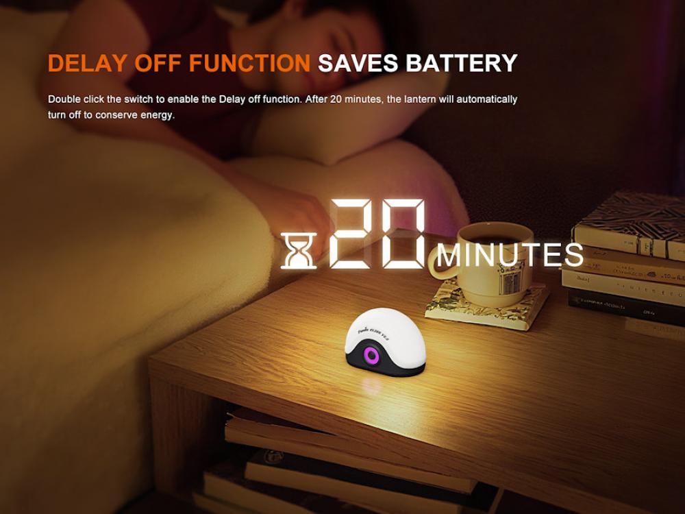ميزة الإيقاف المؤقت لتوفير البطارية: اضغط على زر التشغيل مرتين لتفعيل الميزة، واللمبة ستطفئ نفسها تلقائيًا بعد 20 دقيقة لتوفير الطاقة.بحيث لا ينفد شحن البطارية