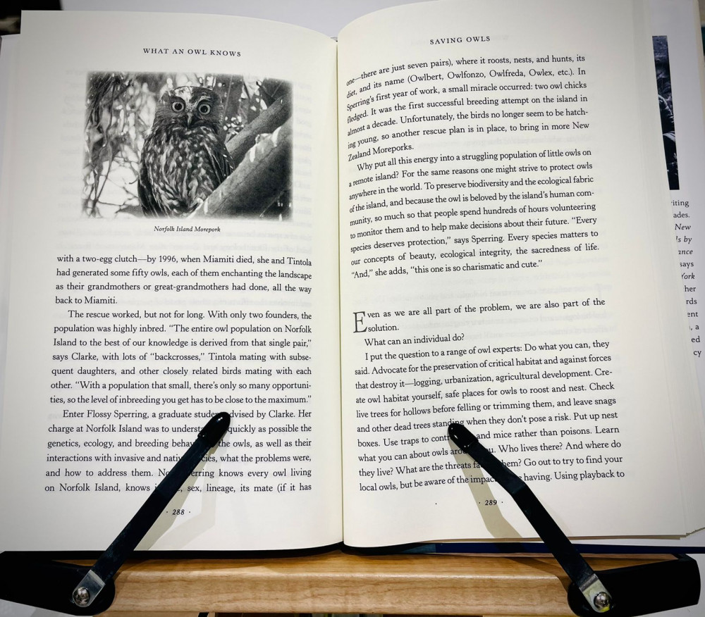 في هذا الكتاب تقوم المؤلفة بتدوين ملاحظاتها الميدانية الشخصية حول طيور البوم، مع سرد مذهل لمهارات الصيد المذهلة والتواصل والبراعة الحسية لهذه الطيور .