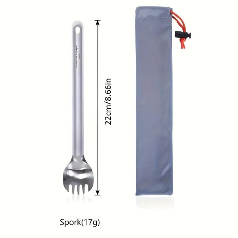 - عبارة عن أداة ( سبورك ) ملعقة وشوكة مدمجة طويلة .