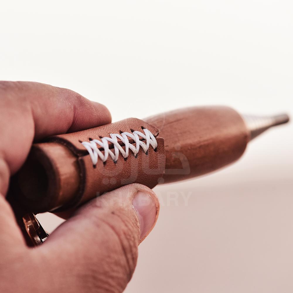 - مصنوع من الاستانلس ستيل / المقابض من الخشب / قطعة الحماية من الجلد .