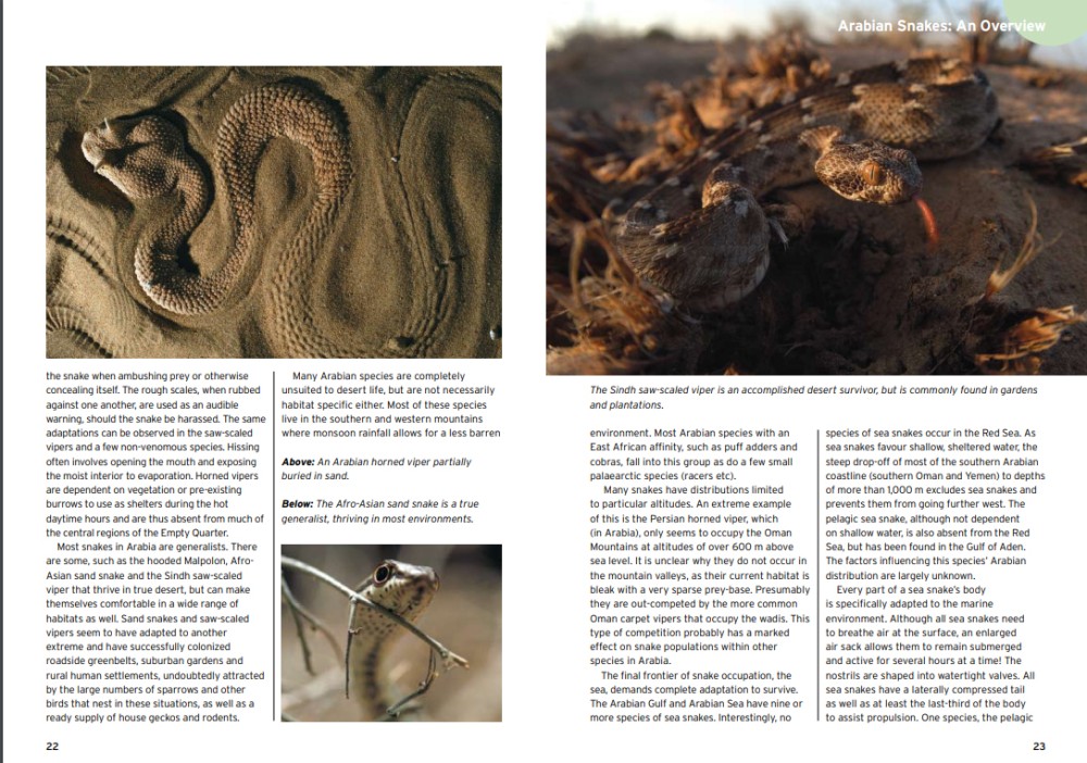 يعتبر هذا الدليل الميداني عن الأفاعي الأول من نوعه في التعرف على أفاعي شبه الجزيرة العربية .