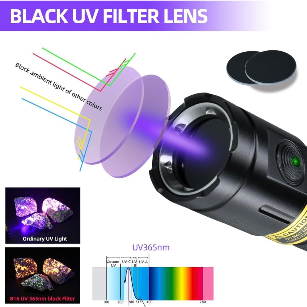 - الطول الموجي ( 365 ) نانومتر . . ( إضاءة ناعمة وغير مرئية لكنها أكثر مثالية لكشف ما تريد بنقاء !! ) .