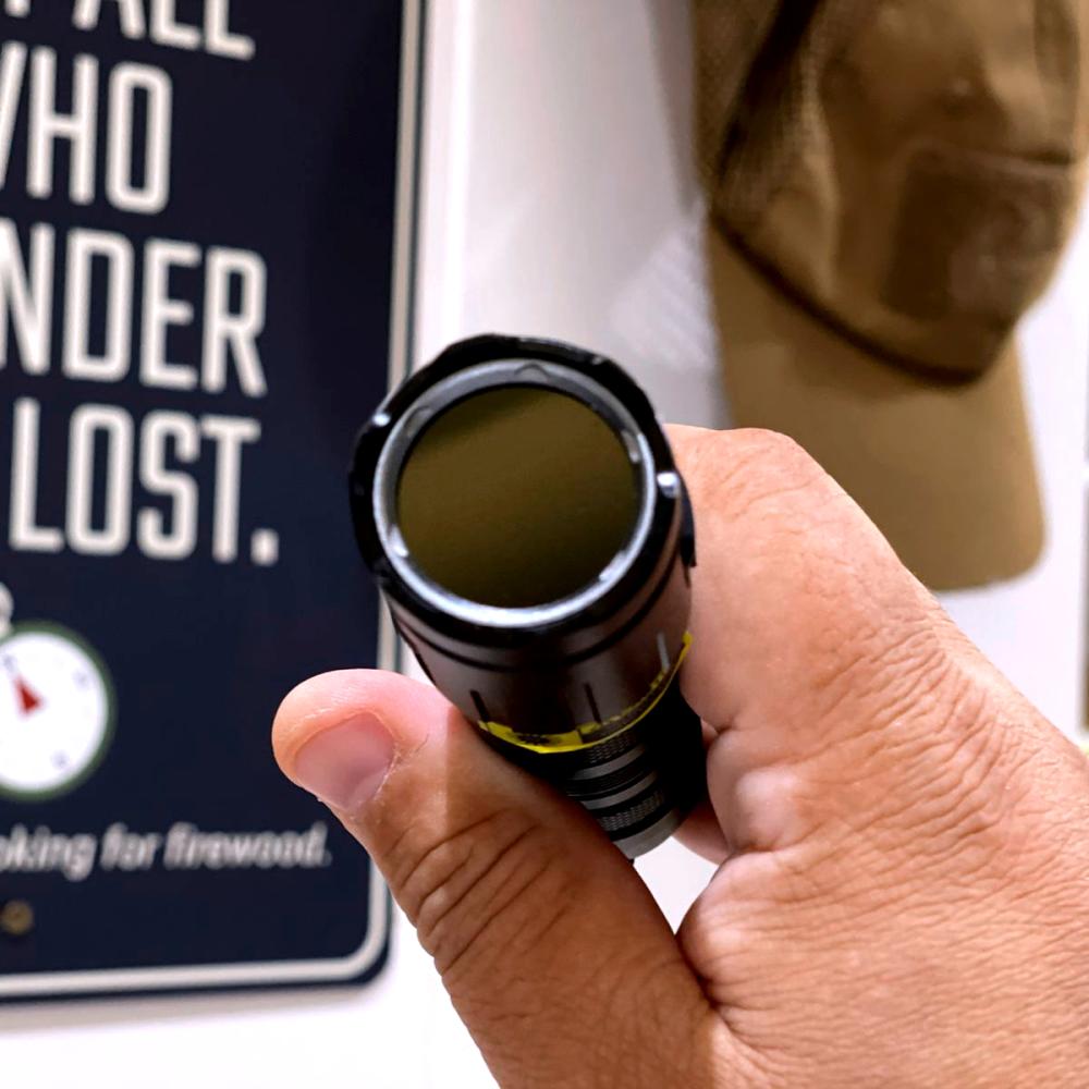 - مزود بثلاث إضاءات وعدسة بصرية سوداء مقسّاة صلبة تعمل على تصفية الضوء المرئي المزعج .