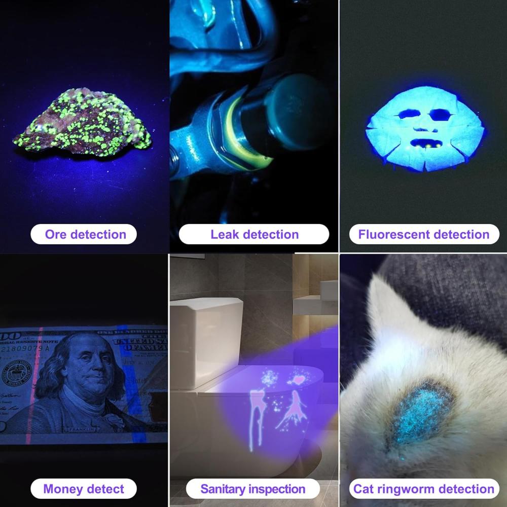 لذلك لا يبدو ساطعًا مثل ضوء ( 395 ) نانومتر، ولكنه في المقابل أكثر راحة للعين وأكثر مثالية ونقاء للكشف في البيئات المظلمة .