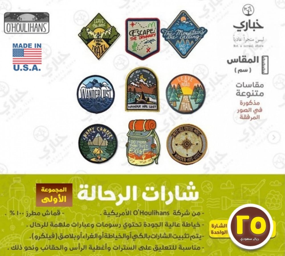 *** خلفية الشارة تحتوي على مادة لاصقة يتم تثبيها بالكي، كما يمكن أيضاً خياطة ( فليكرو ) عليها لتثبيتها ***
