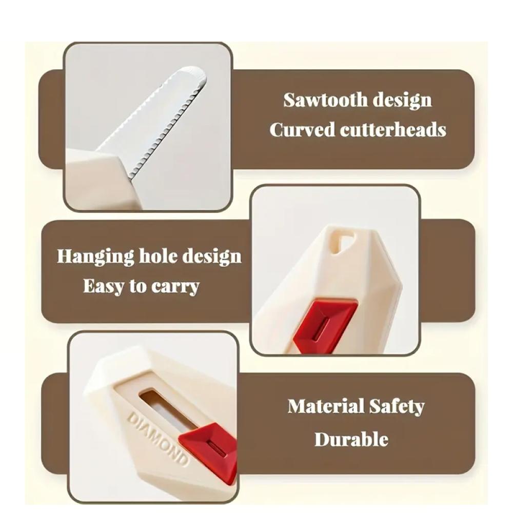- يتيح فتح كراتين الشحنات ونحوها مع تقليل نسبة خدش محتوياتها .