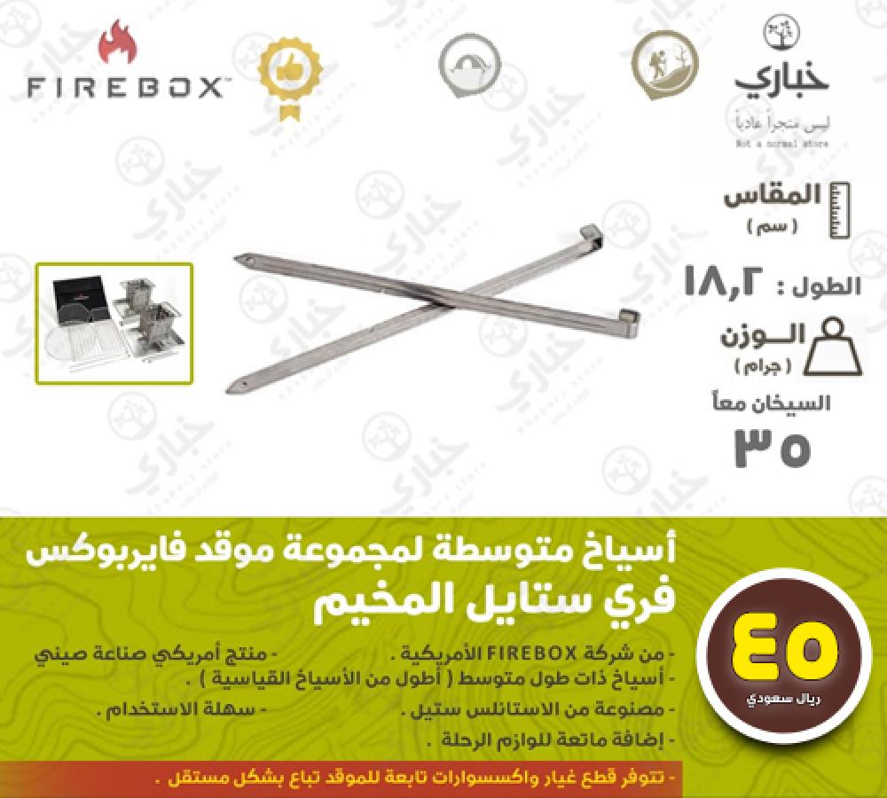 - أسياخ ذات طول متوسط ( أطول من الأسياخ القياسية ) تتوافق عند دمج اثنين من مواقد فري ستايل الرحال وجعلهما بشكل مستطيل .