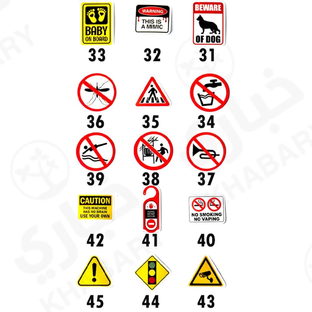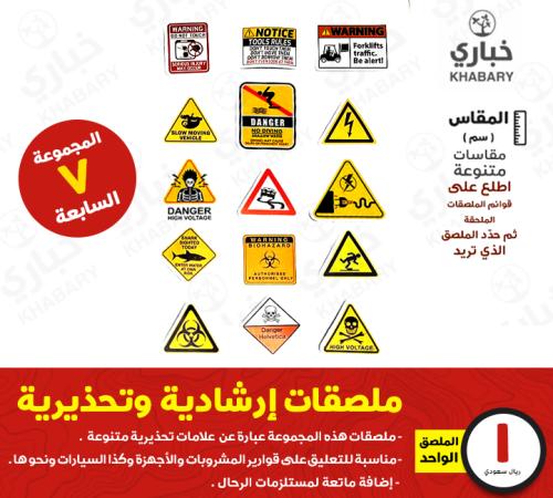 - ملصقات هذه المجموعة عبارة عن علامات تحذيرية متنوعة .