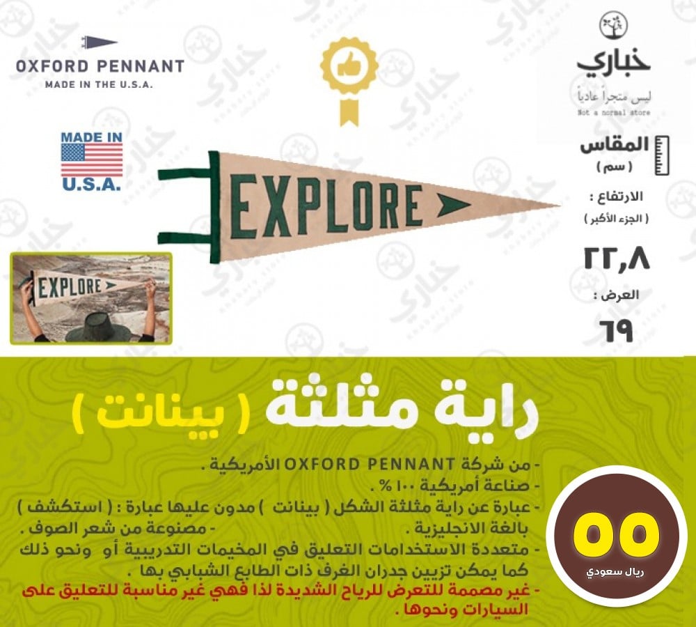 - عبارة عن راية مثلثة الشكل ( بينانت ) مدون عليها عبارة : ( استكشف ) بالغة الانجليزية .