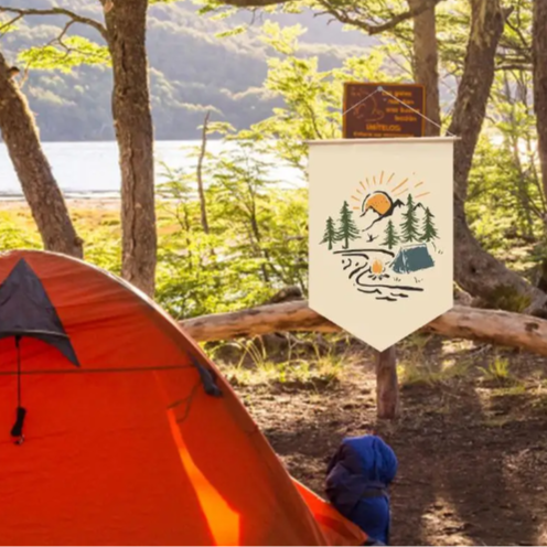 - عبارة عن علم يعلق بشكل طولي يحتوي رسمة معبرة عن التخييم وسط الطبيعة .